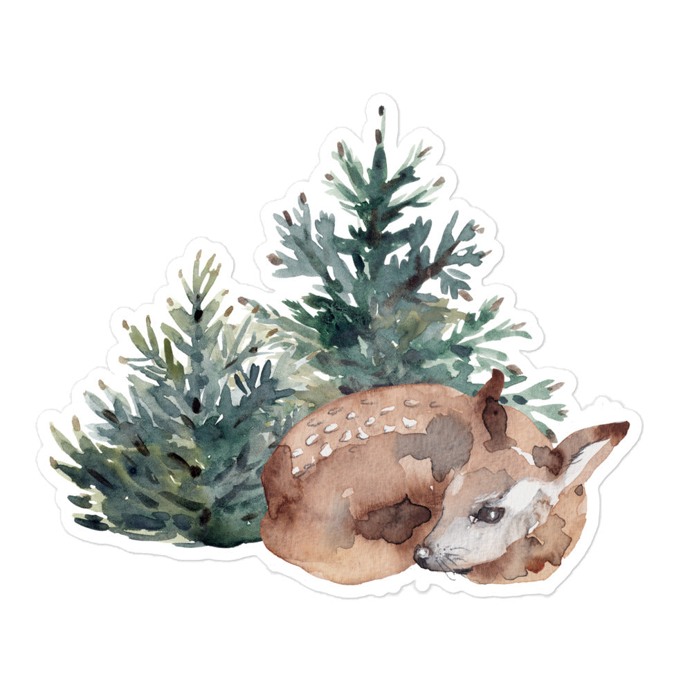 Christmas aesthetic stickers baby deer Holiday winter decor greenery woodland watercolor vinyl laptop planner diary decal.