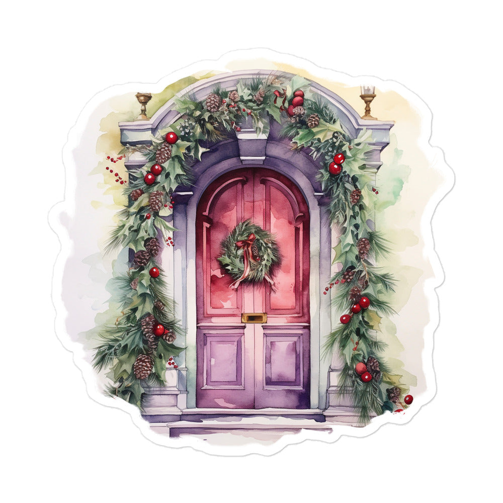 Christmas door porch aesthetic stickers Holiday winter decor floral wreath watercolor vinyl laptop planner diary decal decor.