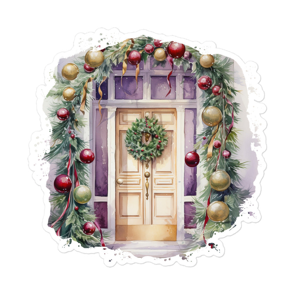 Christmas door porch aesthetic stickers Holiday winter decor floral wreath watercolor vinyl laptop planner diary decal decor.
