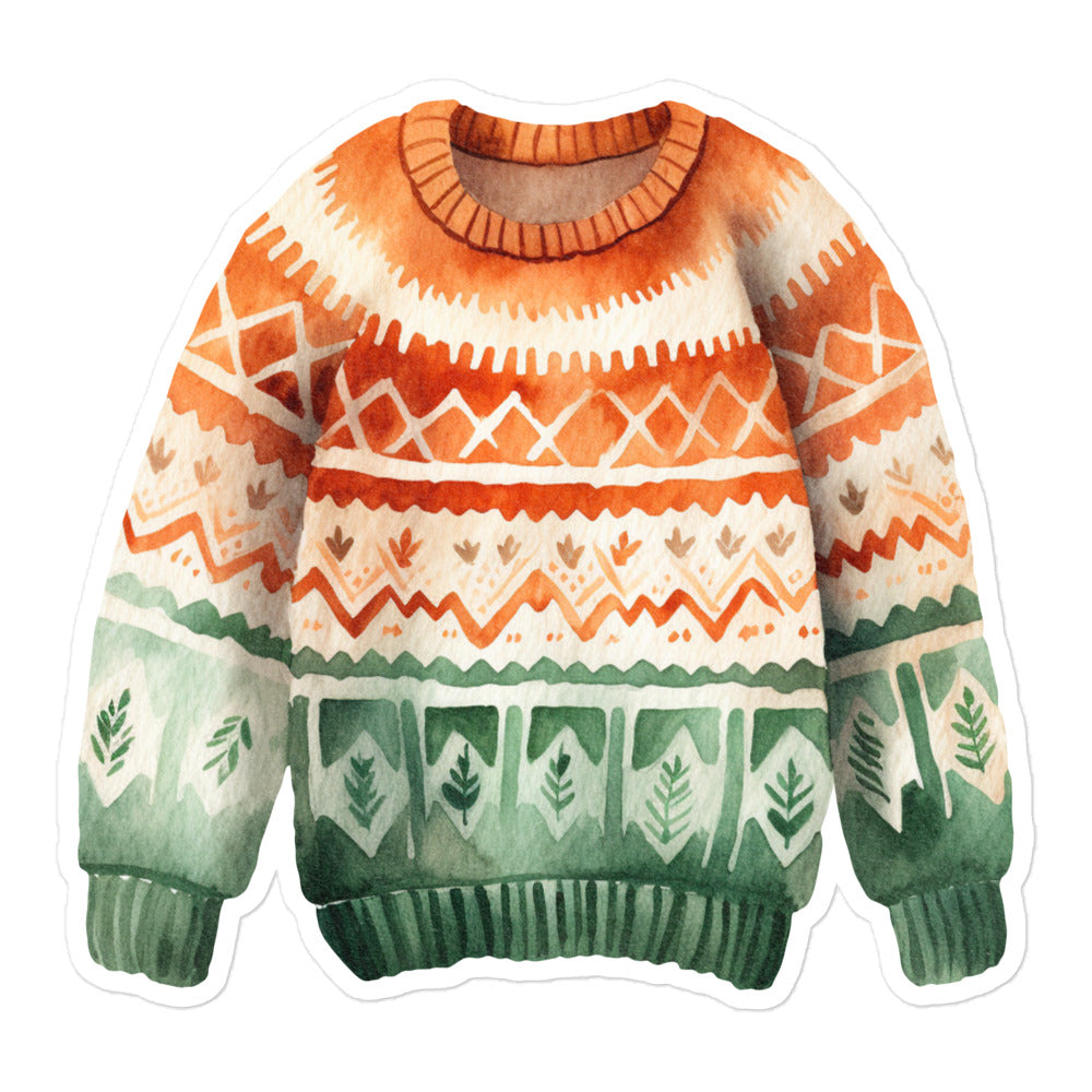 Christmas sweater stickers Ugly knit crochet sweater winter decor watercolor vinyl laptop planner diary decal.