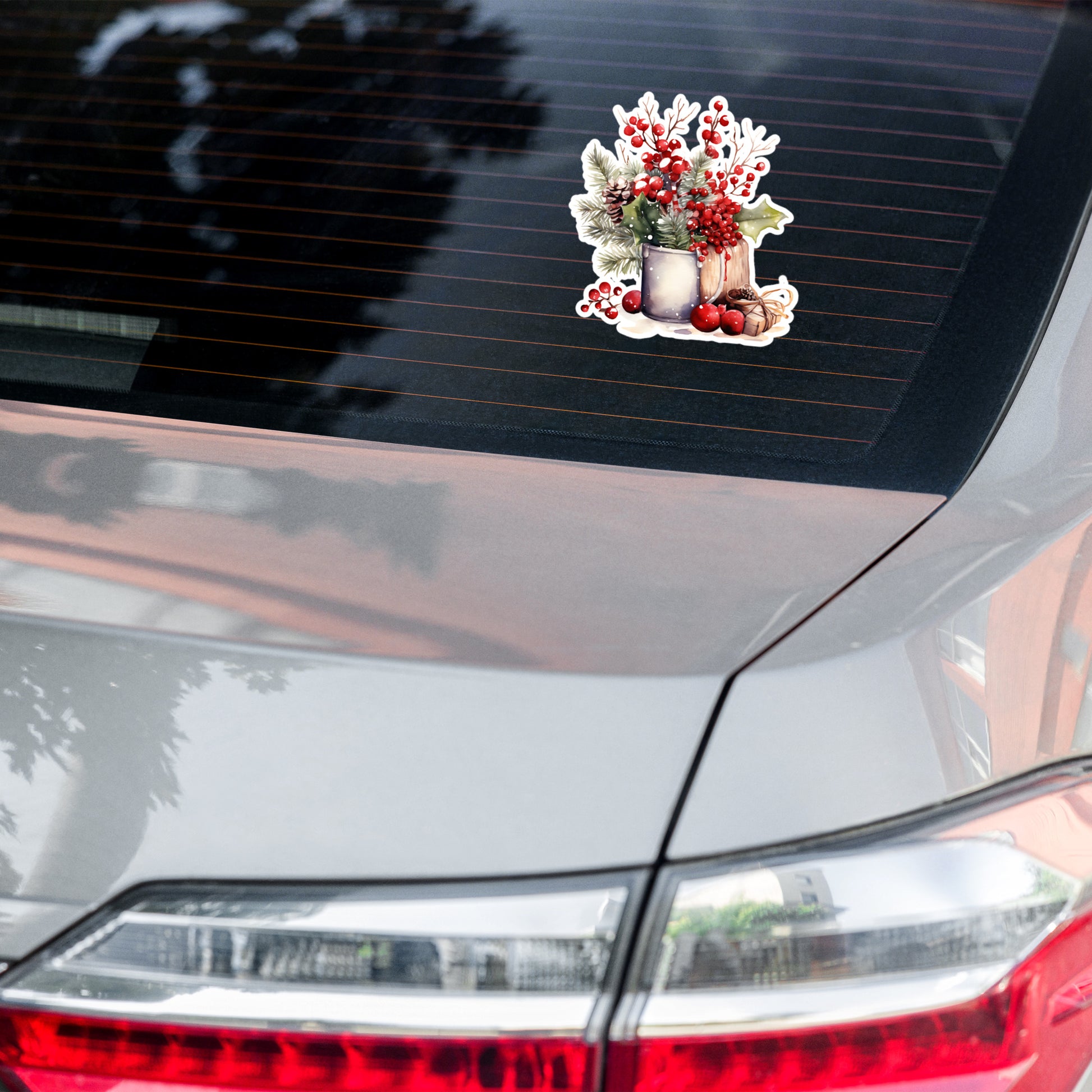 Christmas sticker Floral winter holiday aesthetic vinyl decal laptop planner journal water bottle tumbler gift decor.