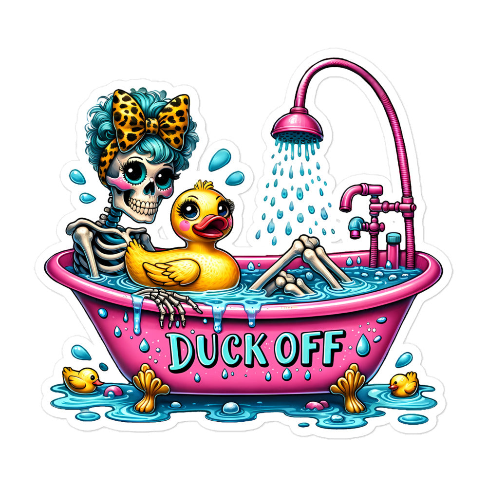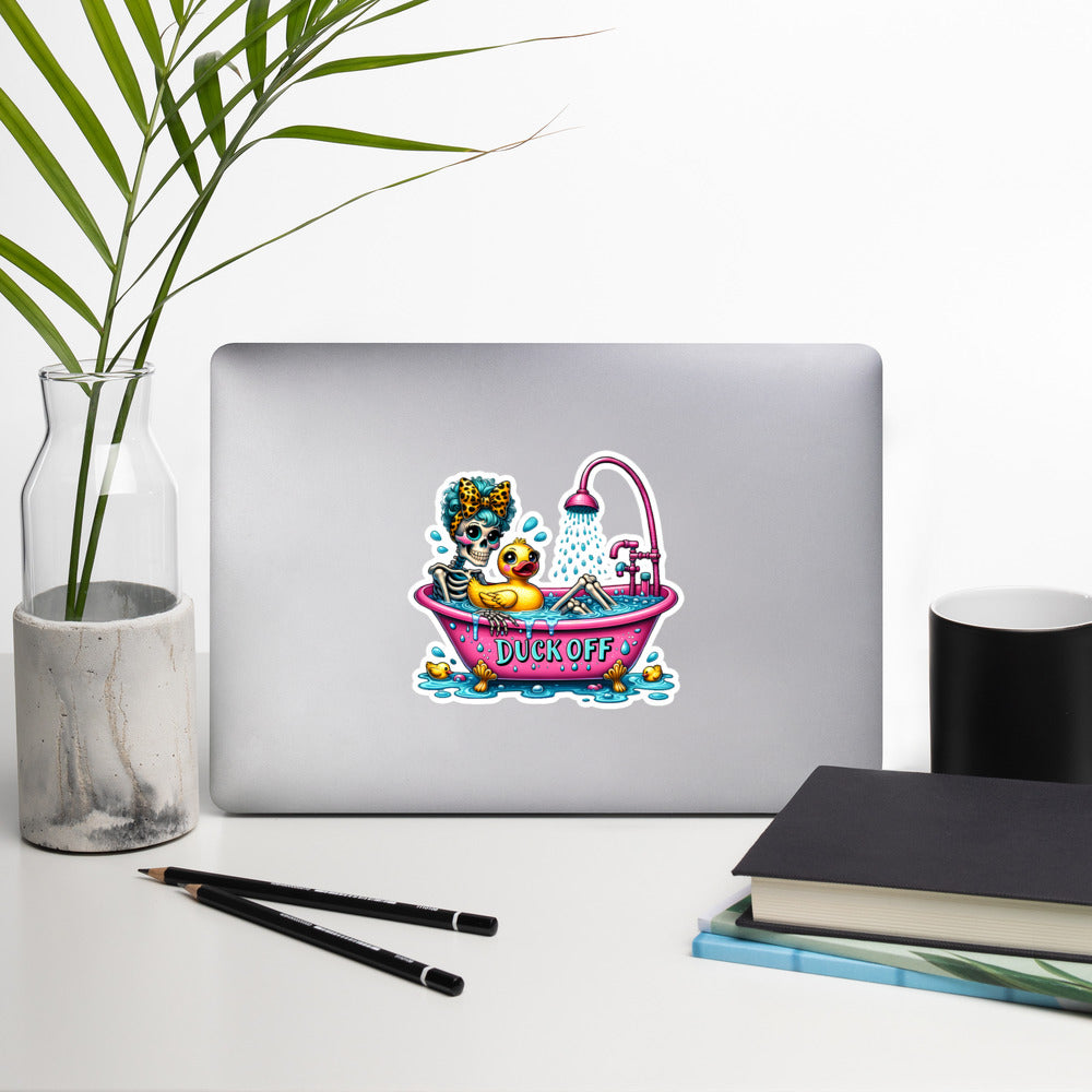 Duck off skull sticker. Funny Skeleton sarcastic self care mental health sugar skull Halloween vinyl decal. Nice gift favor souvenir.