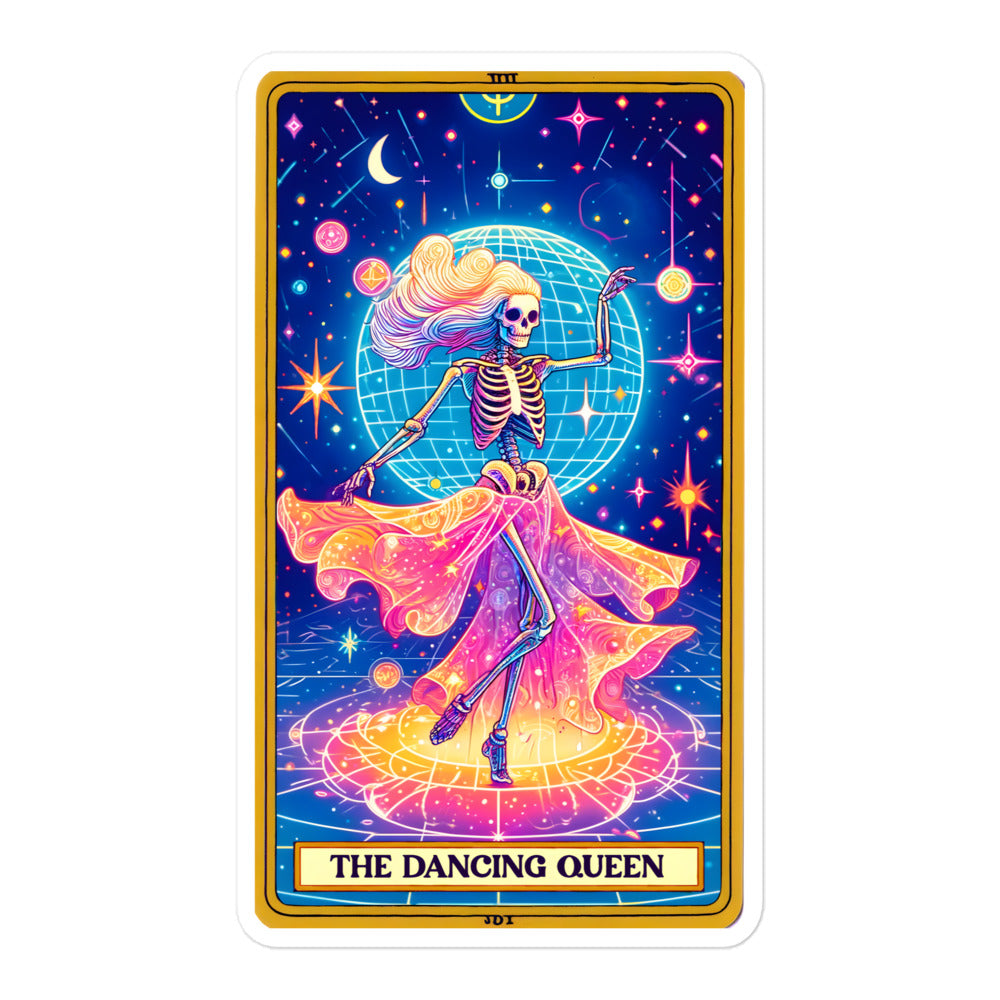 Funny tarot stickers Dancing queen sarcastic creepy spiritual sugar skull spell magic witchy Halloween laptop planner journal.