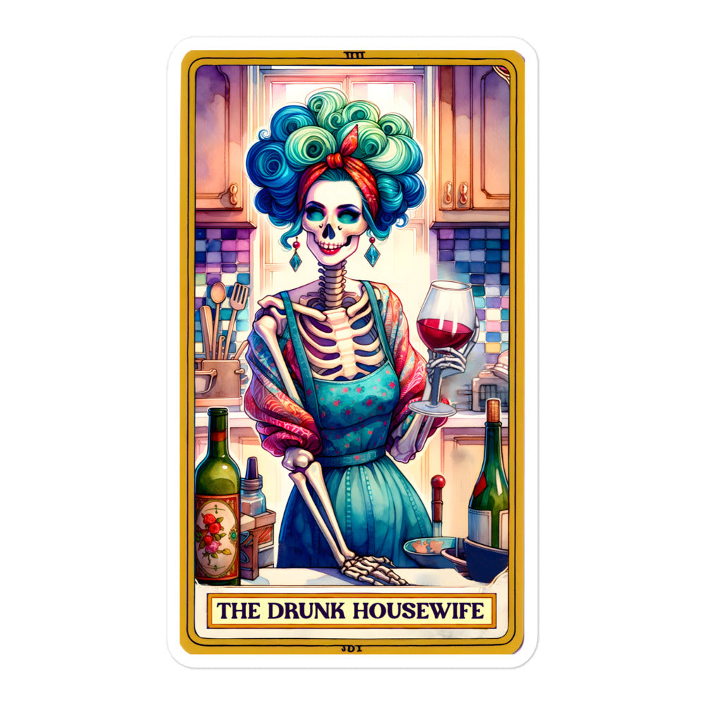 Funny tarot stickers Drunk Housewife sarcastic creepy spiritual sugar skull magic witchy Halloween decal laptop planner journal.