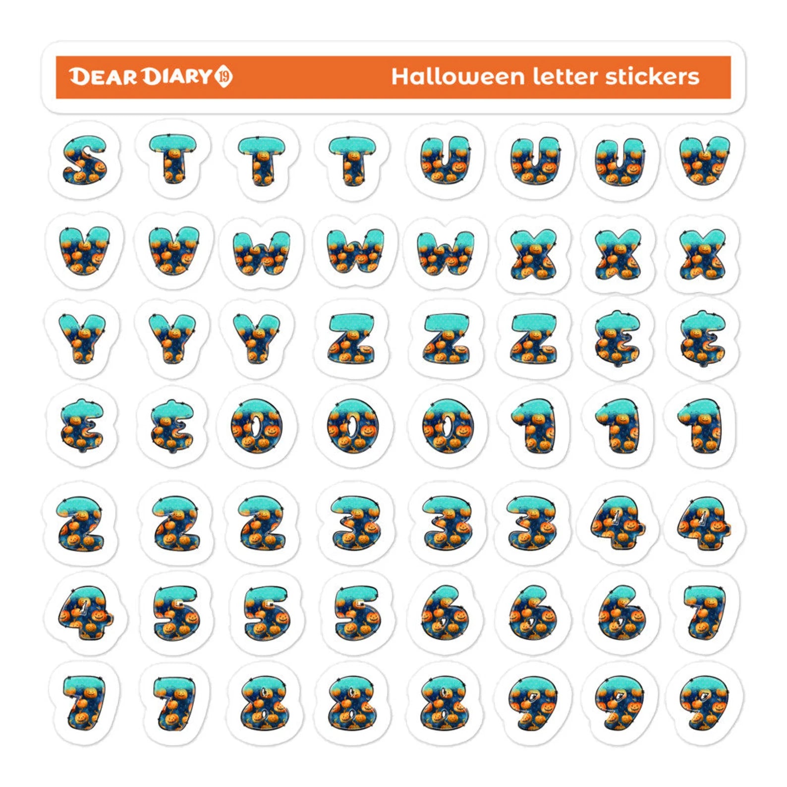 Halloween Alphabet Letter Numbers Stickers sheet pack HLSH01