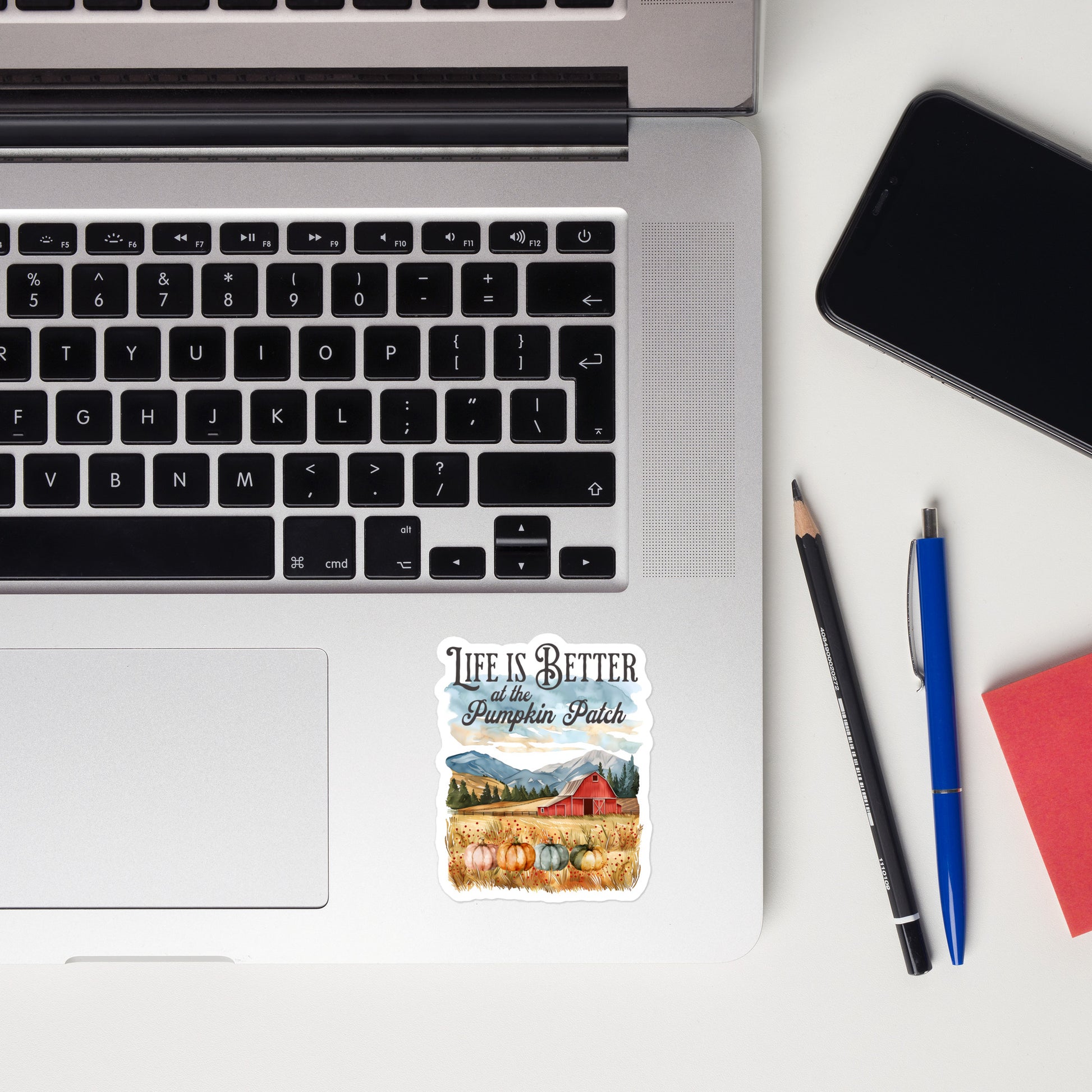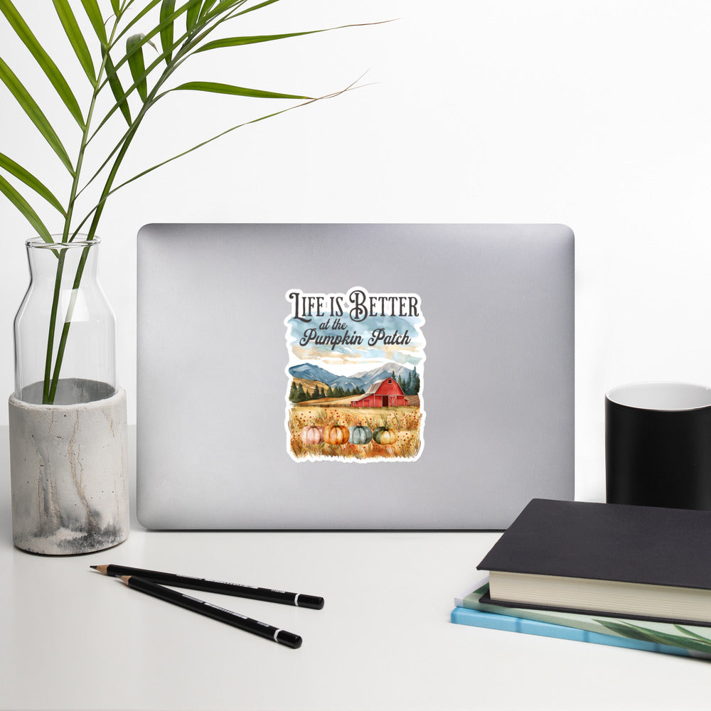 Pumpkin sticker. Watercolor farm fall autumn patch aesthetic vinyl decal. Nice gift favor souvenir.